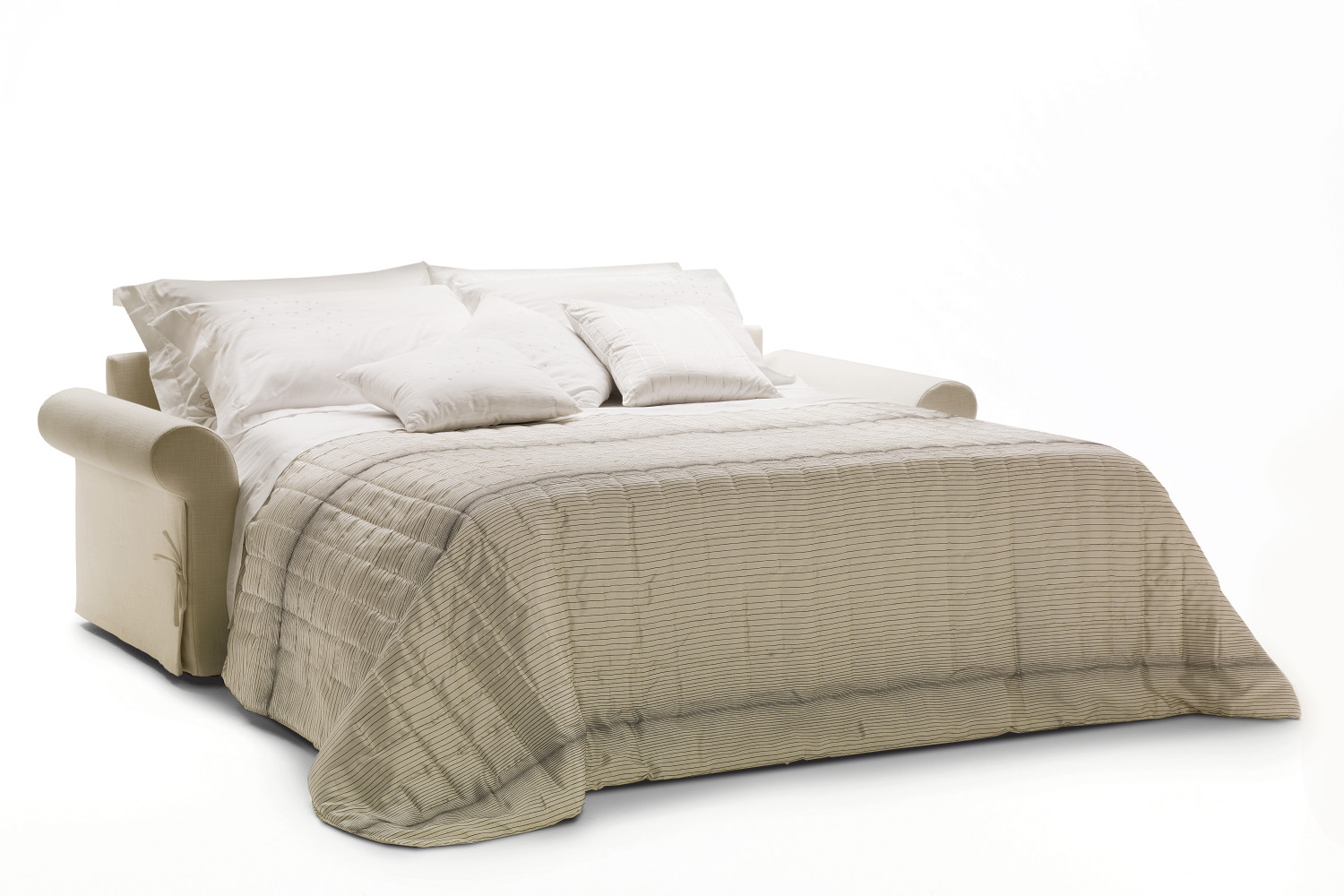 Механизм Lampolet гарантирует быстрое и легкое открытие благодаря ручке, скрытой между подушками подлокотников: вам нужно только потянуть ее к себе и держать каркас кровати, чтобы открыть кровать, без необходимости снимать какую-либо подушку вообще.