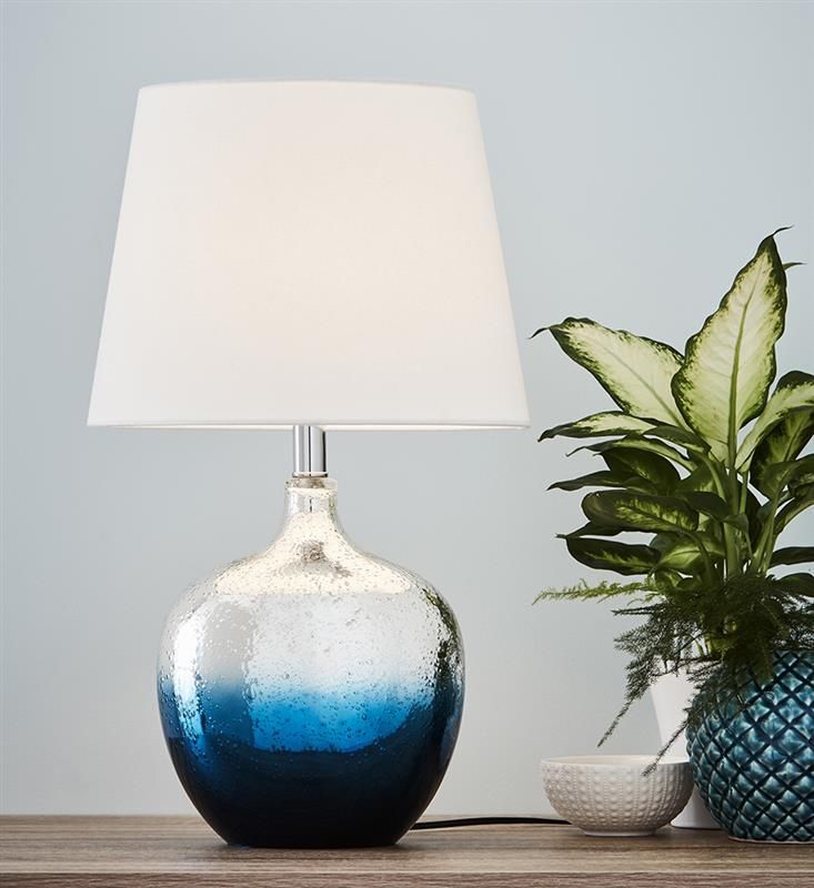 Интерьерная настольная лампа с выключателем Ocean 107124 – товар от шведской компании MarkSlojd. Рассчитана на размещение в гостиной, прихожей и коридоре, спальне, предпочтительный стиль дизайна – модерн. Примерная площадь освещения 3 кв. м при максимальной мощности в 60 Вт. Основной материал изготовления – стекло хром и синего цвета. Абажур выполнен в белом цвете. Цоколь – E27, максимальная мощность лампочки – 60 Вт.